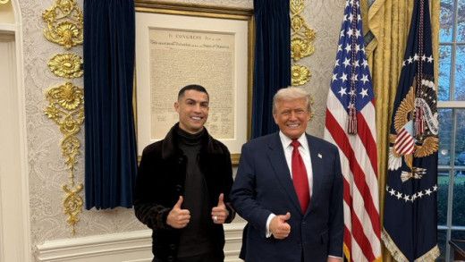 АНУ-ын Ерөнхийлөгч Дональд Трамп хөлбөмбөгийн алдарт од Криштиано Роналдог мягмар гарагт /2025.11.18/ Цагаан ордонд хүрэлцэн ирсэнд нь талархал илэрхийлж, одыг шүтэн биширдэг хүү нь түүнийг одоо бага …