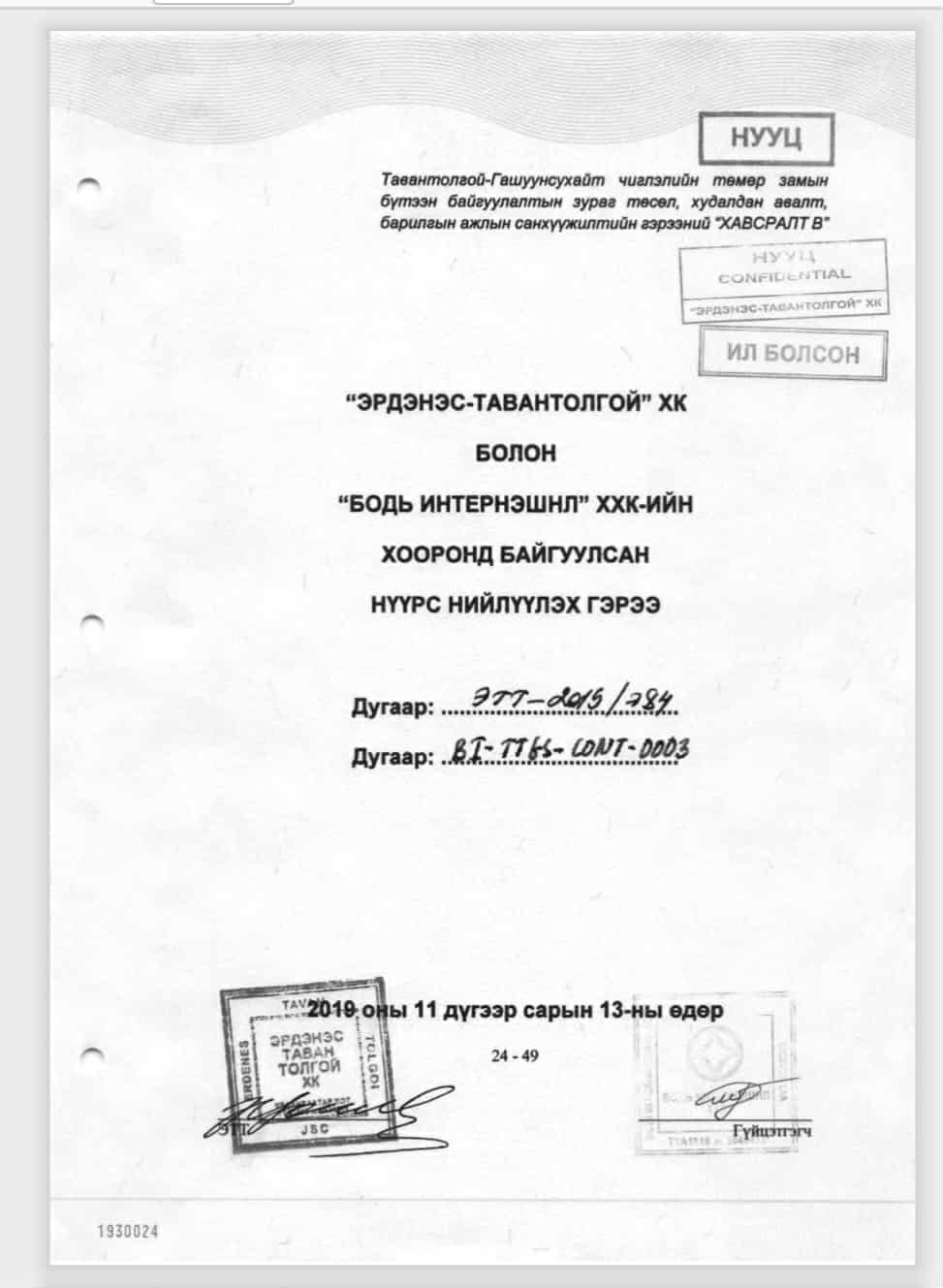Ил болгосон гэрээтэй энд дарж танилцана уу: ЭРДЭНЭС ТАВАНТОЛГОЙ