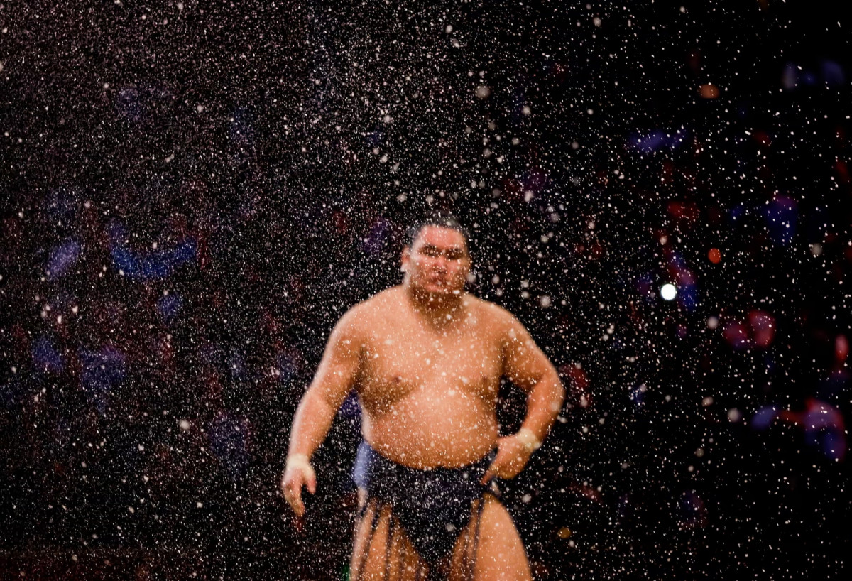 Английн Лондон хотын Royal Albert Hall ордонд болсон Лондон башёгийн сүүлийн өдөр Ёкозүна Хоошёорюү Бямбасүрэн ижил амжилттай явсан Оносатог ялж, барилдаанд түрүүлэхийн өмнө давс шидсэн энэ агшныг The Guardian-ы Том Женкинс гэрэл зургийн дурандаа буулгасан байна.