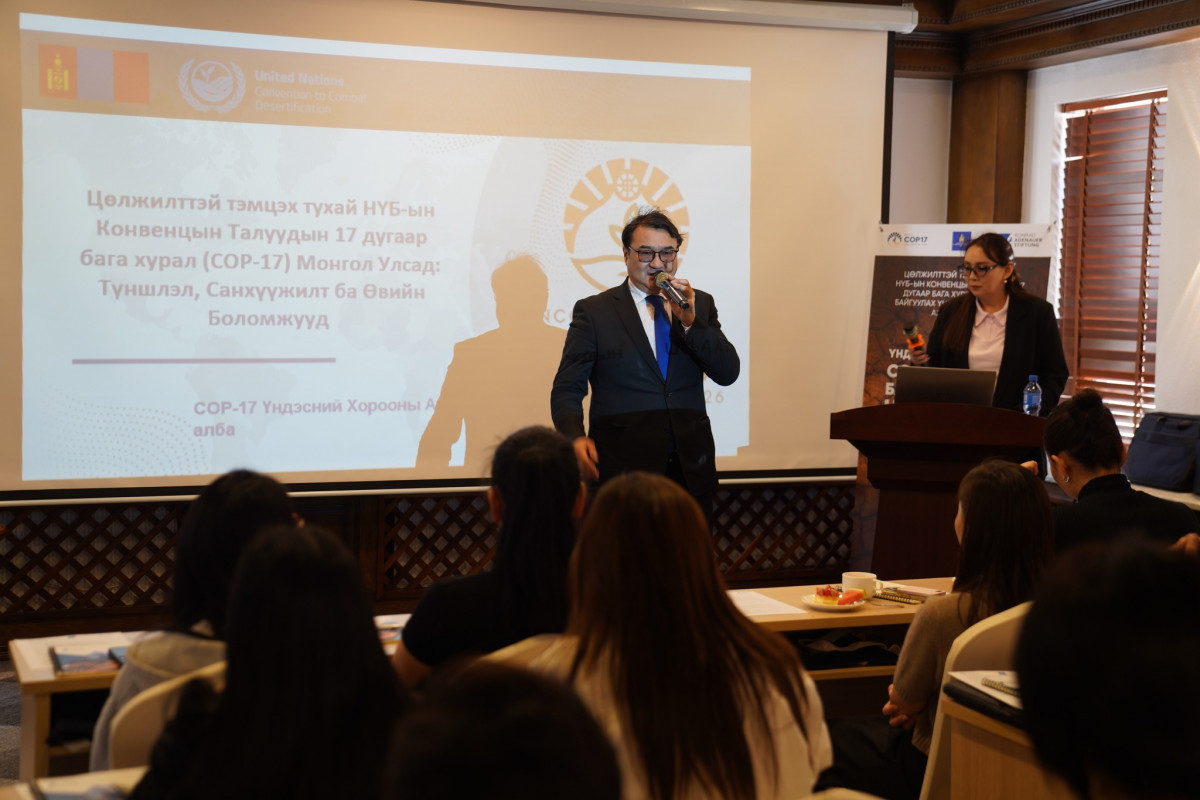 Олон улсын томоохон хурал Монголд анх удаа болох гэж буйтай холбоотойгоор Байгаль орчин, уур амьсгалын өөрчлөлтийн яам, Цөлжилттэй тэмцэх тухай НҮБ-ын Конвенцын Талуудын 17 дугаар бага хурлыг зохион байгуулах Үндэсний хорооны Ажлын алба “Конрад-Аденауэр сан”-тай хамтран “Үндэсний хэмжээнд сэтгүүлчдийг байгаль орчны чиглэлээр мэргэшүүлэх сургалт”-ыг үе шаттайгаар хэрэгжүүлж байгаа билээ.