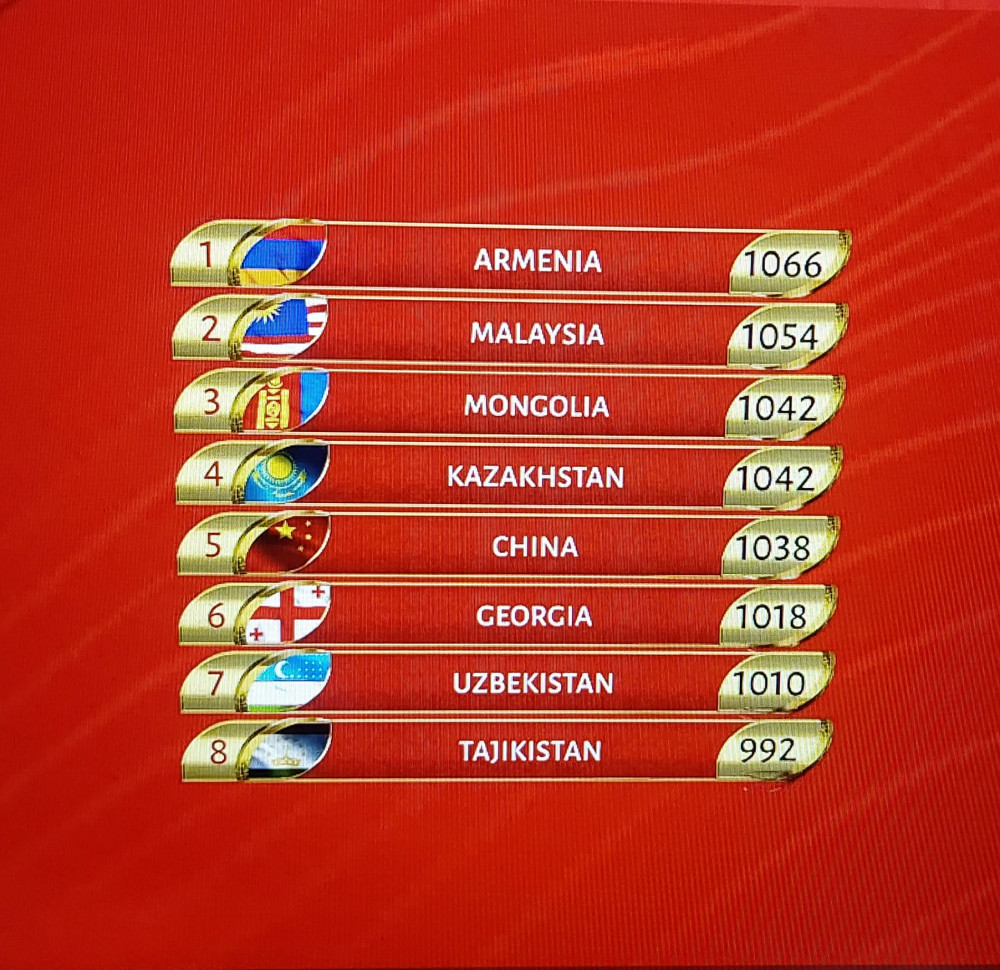 Хагас шигшээ шатны дараах дүнгээр Арменийн дуучин 1066 оноогоор тэргүүлж байгаа бол Малайз 1054 оноогоор хоёрт бичигдэж байна.