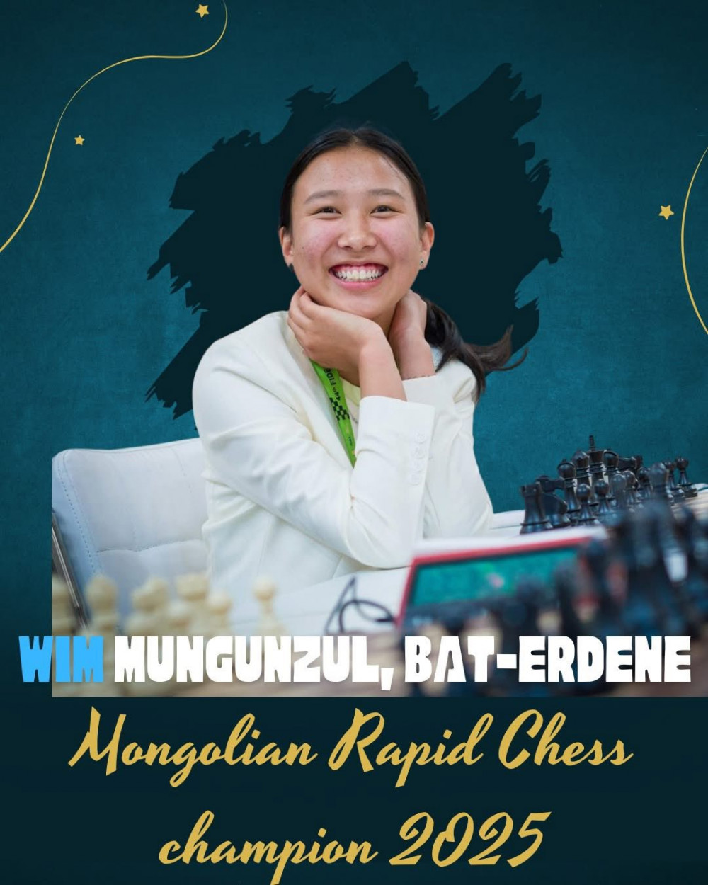 Улсын аварга шалгаруулах тэмцээнд тус төрлийн эмэгтэйчүүдийн ангилалд WIM Б.Мөнгөнзул 9 өрөгт 7.5 оноогоор тэргүүн байр эзэлсэн байна.
