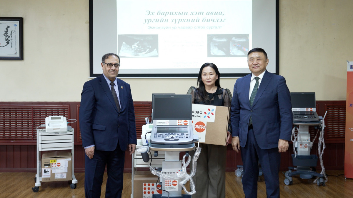 Эрүүл мэндийн яам, НҮБ-ын Хүн амын сан, Люксембургийн Засгийн газрын хамтарсан санхүүжилтээр хэрэгжүүлж буй “Сэргийлж болох эхийн болон перинатал эндэгдлийг тэглэх үйл ажиллагааг эрчимжүүлэх нь” төслийн хүрээнд 10 аймгийн 20 сумын эрүүл мэндийн төв, алслагдсан 2 дүүргийн өрхийн эрүүл мэндийн төвүүдэд нийт 1 тэрбум 864 сая төгрөгийн үнэ бүхий 22 зөөврийн ЭХО, 22 ургийн зүрхний бичлэгийн аппаратыг хүлээлгэн өгсөн байна.