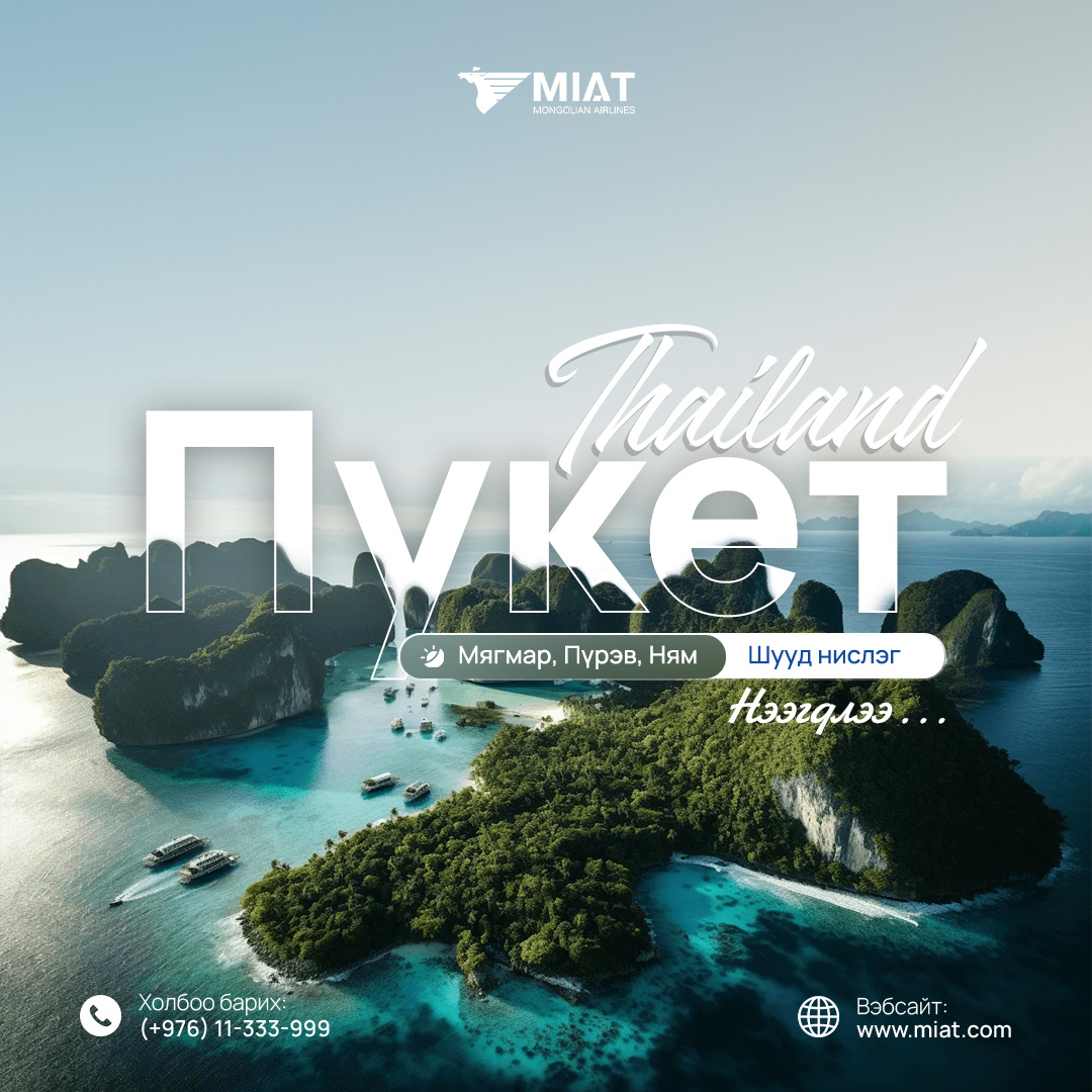 МИАТ ТӨХК нь Тайланд улсын Пукет арал руу 7 хоног бүрийн Мягмар, Пүрэв, Ням гарагуудад шууд нислэг үйлдэнэ.