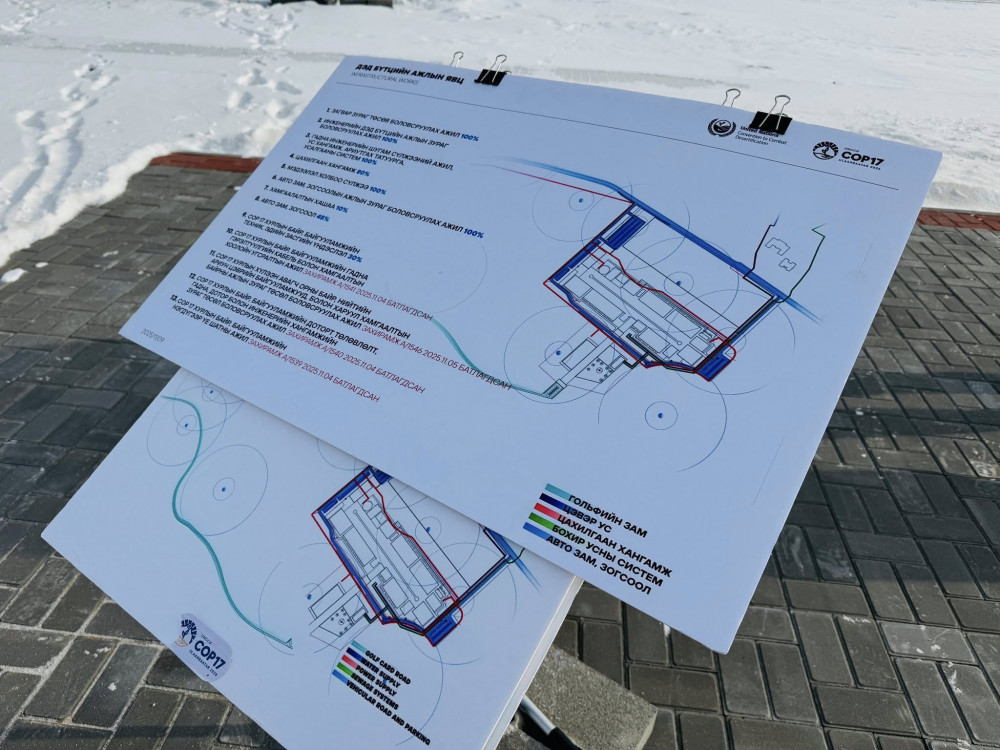 Авто зам болон зогсоол барих ажил 45 хувийн гүйцэтгэлтэй байна. Хүйтний эрч чангарсан учраас зам талбайн ажлуудыг түр хугацаанд зогсоожээ. Ирэх оны гуравдугаар сард үндсэн бүтээн байгуулалтууд өрнөх юм байна.
