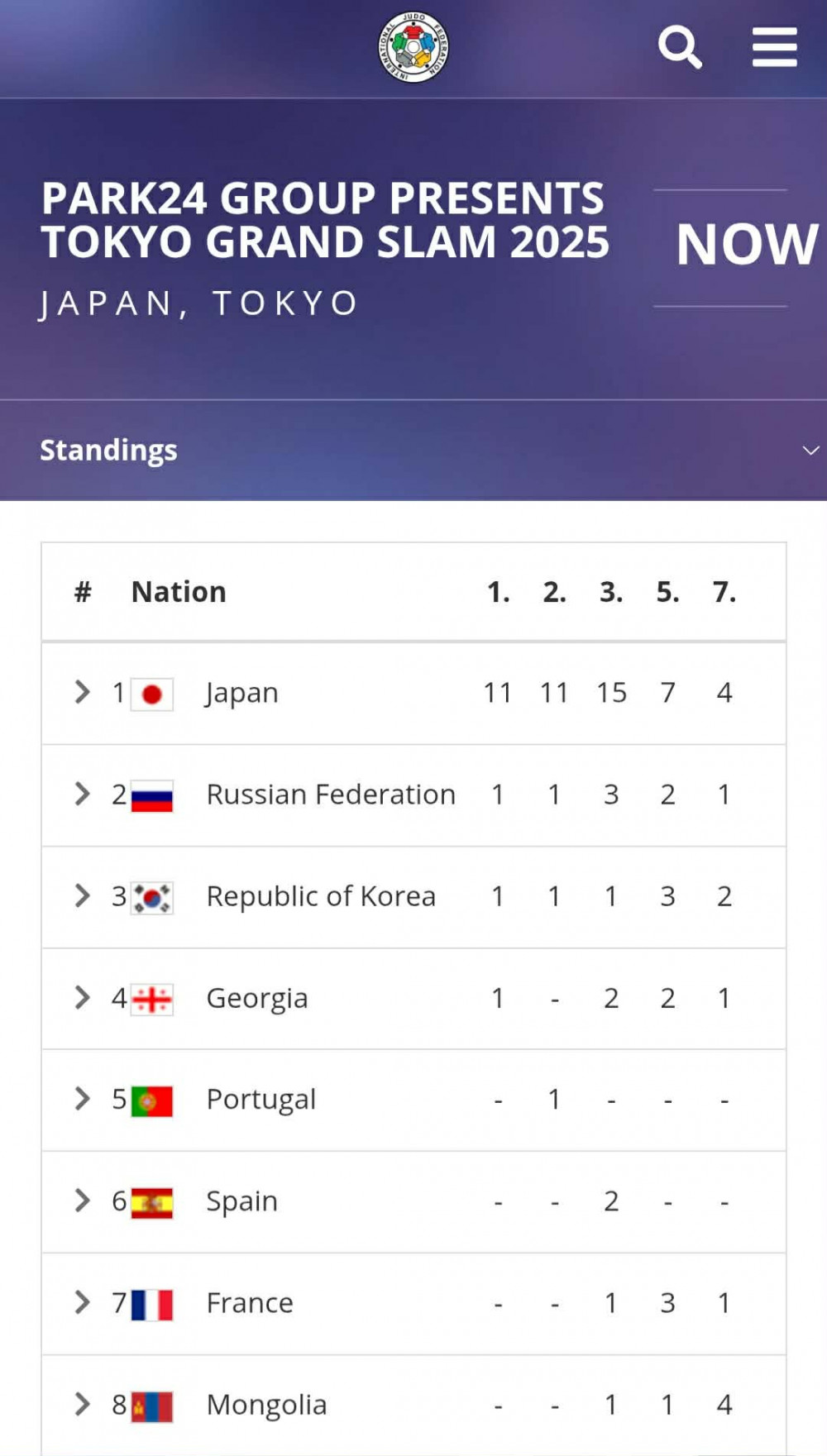 Ийнхүү Токио Их дуулга-2025 тэмцээнээс манай тамирчид нэг хүрэл медаль хүртэж, тавдугаар байрт 1, долдугаар байрт 4 тамирчин орсноор 41 орноос 8-д эрэмбэлэгдлээ.