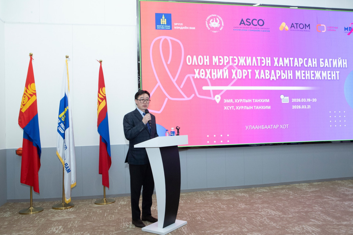 Эрүүл мэндийн яам, Хавдар Судлалын Үндэсний Төв, Олон улсын хавдрын хяналтын холбоо (UICC), Америкийн эмнэл зүйн хавдрын нийгэмлэг (ASCO) хамтран “Олон мэргэжилтэн хамтарсан багийн хөхний хавдрын оношилгоо, эмчилгээ” сэдэвт сургалт зохион байгуулж байна.