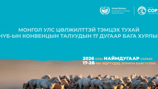 НҮБ-ын Цөлжилттэй тэмцэх конвенцын Талуудын 17 дугаар бага хурал (COP17) манай улсад 2026 оны наймдугаар сарын 17-28-ны өдрүүдэд болно. СOP17 болоход 199 хоног үлдлээ. Бага хурлын бэлтгэл а…
