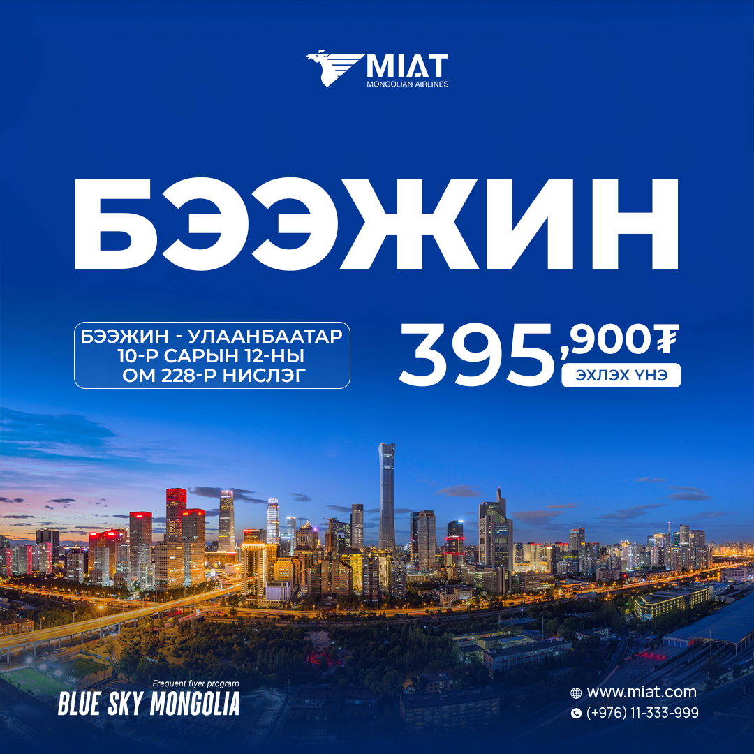 МИАТ ТӨХК нь Бээжин - Улаанбаатар чиглэлийн 10-р сарын 12-ны ням гарагийн OM228 дугаарын нислэгийн тийзэндээ хөнгөлөлт зарлалаа.