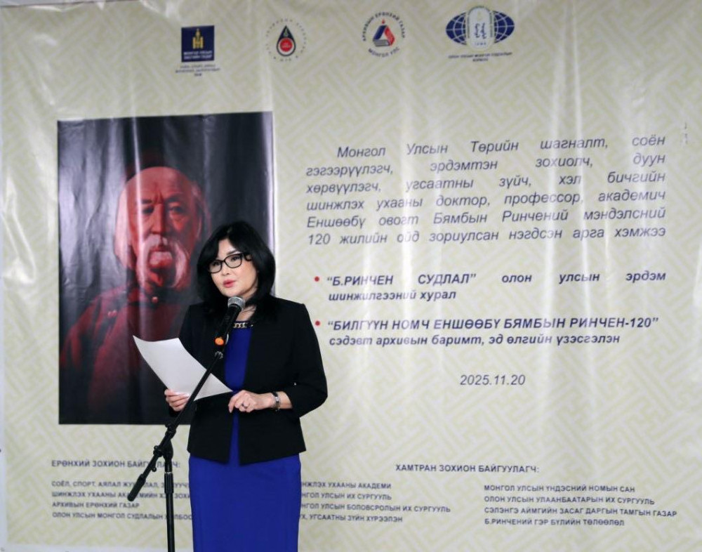 Архивын ерөнхий газраас Монгол Улсын Төрийн шагналт, соён гэгээрүүлэгч, нийгмийн нэрт зүтгэлтэн, академич Бямбын Ринченгийн мэндэлсний 120 жилийн ойг тохиолдуулан “Билгүүн номч, Еншөөбү Бямбын Ринчен-120” сэдэвт архивын баримтын үзэсгэлэнгийн нээлтийг өчигдөр (2025.11.20) хийлээ.