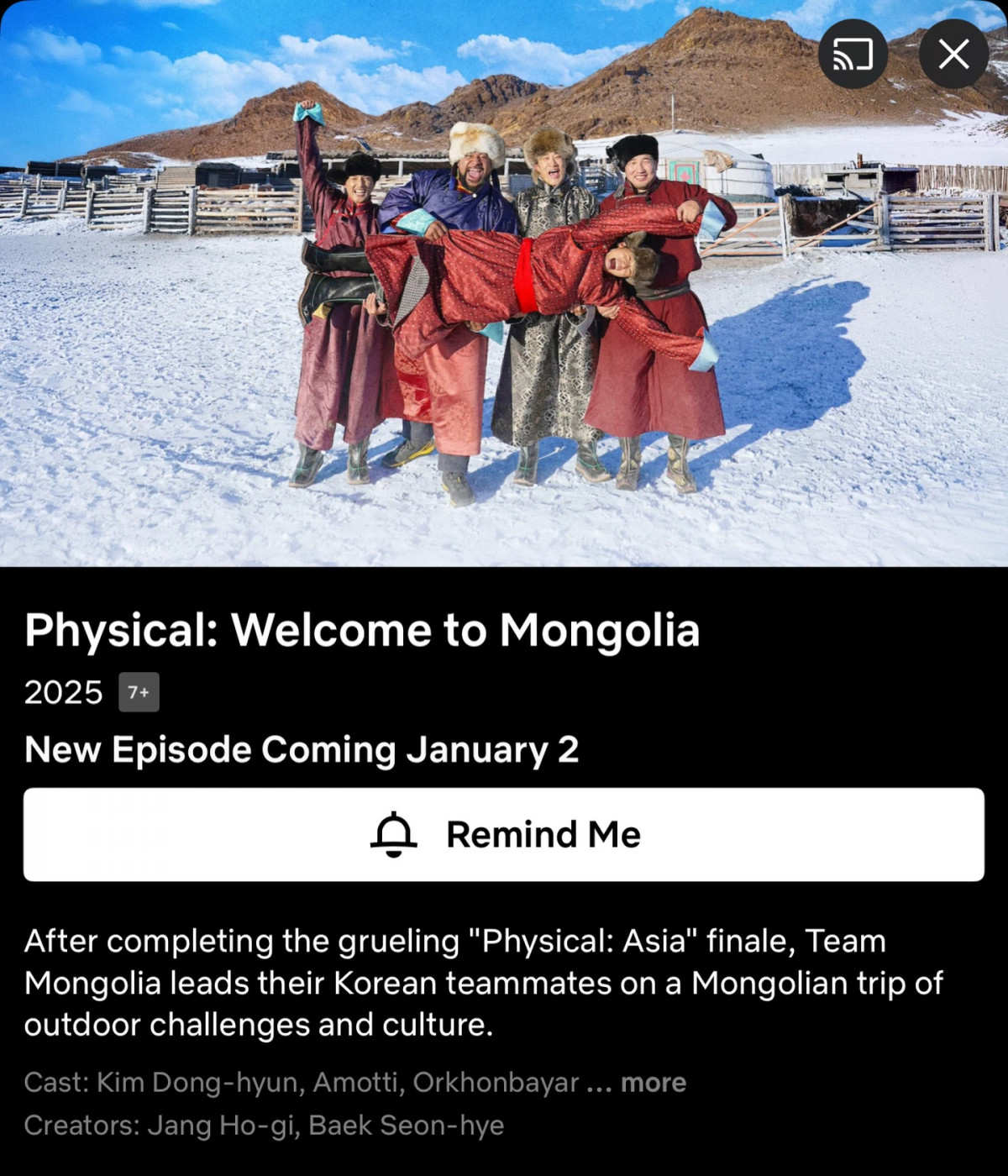 "Spark Agency Mongolia" агентлагийн захирал Э.Дөлгөөн "Physical: Welcome to Mongolia" нэвтрүүлгийг хэзээ үзэж болох талаар мэдээллийг өөрийн цахим хаягтаа бичжээ.