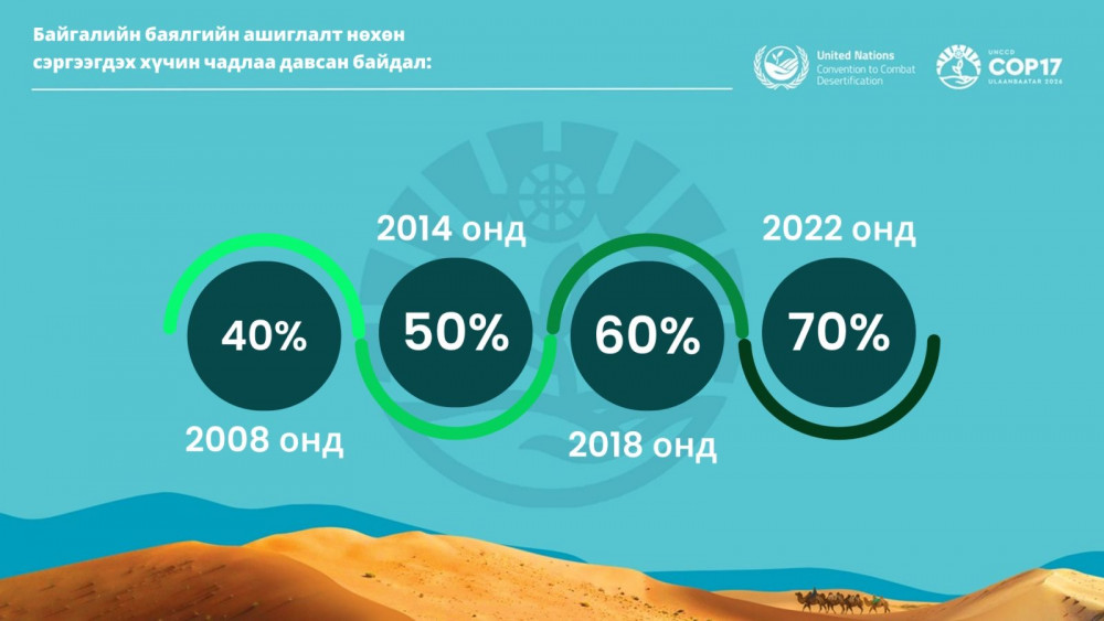 2008 оны байдлаар байгалийн нөөцийг нэг жилд нөхөн сэргээгдэх хэмжээний нөөцөөс нь 40 хувиар хэтрүүлэн ашиглаж байсан бол 2014 онд энэ тоо 50, 2018 онд 60, 2022 онд 70 хувь болж, үржих хүрдээр өсөж байна. Угтаа бол өдөр болгон бид эх дэлхийнхээ нөхөн сэргээгдэх хэм хэмжээнээс ийм хувиар илүү ихийг авч, илүү ихийг ууж идэж, устгаж хороож, хордуулж бохирдуулж байгааг Та эндээс харна уу.