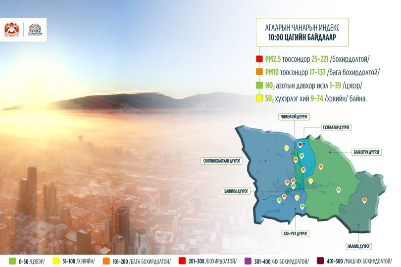 Тодорхой хэлбэл, Улаанбаатар хотын тоосжилтын хэмжээ олон улсад зөвшөөрөгдөх дээд хязгаараас илүү, бүр 2-3 дахин давсан үзүүлэлттэй. УУР АМЬСГАЛЫН ӨӨРЧЛӨЛТТЭЙ холбоотойгоор шороон шуурга дэгдэх давтамж өнгөрсөн хагас зуунд дөрөв дахин нэмэгджээ. Та яг одоо хотыг бүрхсэн утаа, мананг харж байна. Нүүрс, түлшний утаанаас гадна тоосонцорын манан нийслэлийг ийнхүү битүү бүрхсэн дүр зургийг жилийн аль ч улиралд хардаг болсон.
