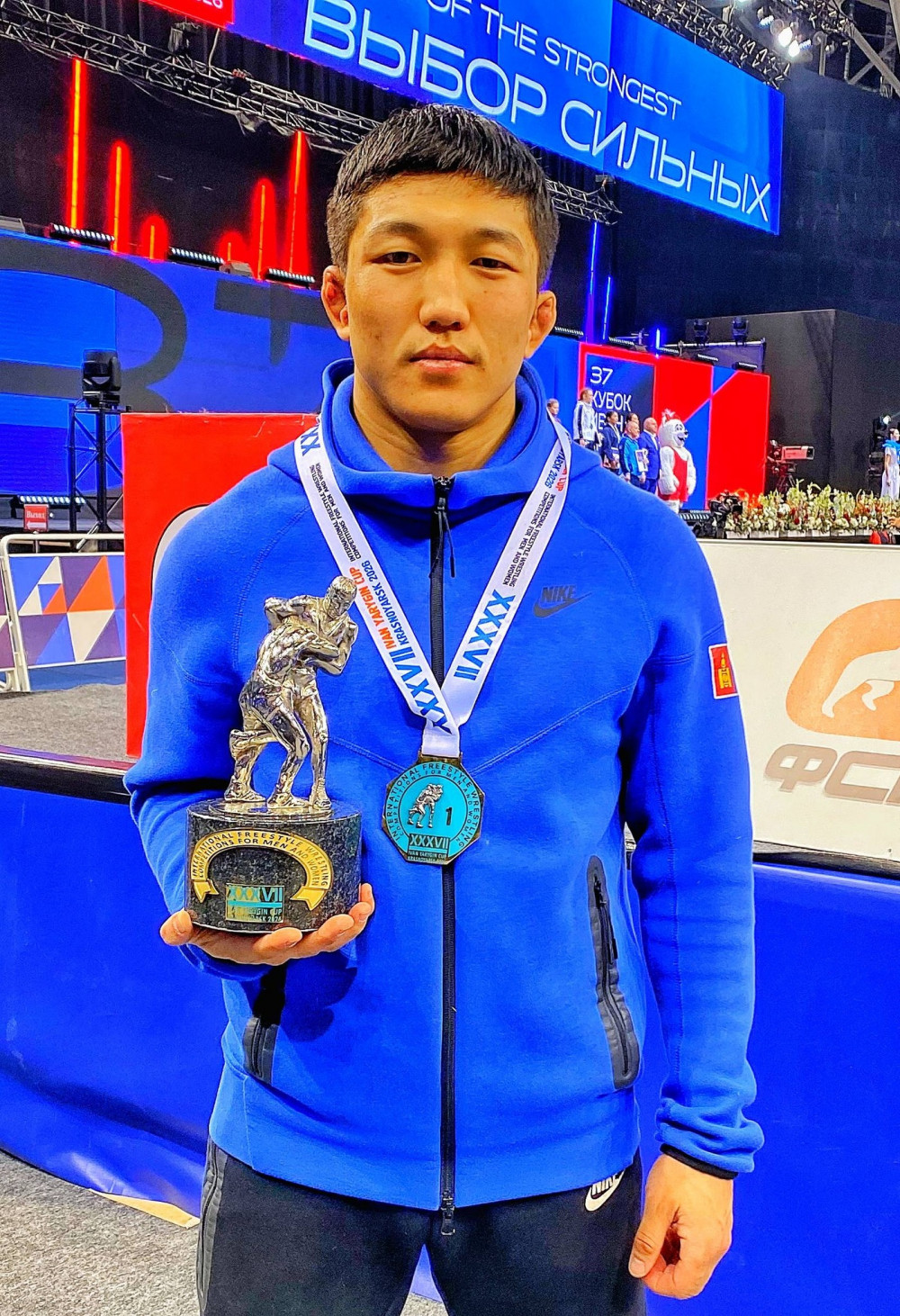ОХУ-ын Красноярск хотноо болж буй Олимп, дэлхийн аварга Иван Ярыгины нэрэмжит алтан гранпри тэмцээний эрэгтэйчүүдийн 57 кг-ийн жинд U23 насны ДАШТ-ий хүрэл медальт, Ази тивийн АШТ-ий хүрэл медальт, Үндэсний шигшээ баг, Төгс дэвжээний бөх Батхуягийн Мөнх-Эрдэнэ түрүүлж, алтан медаль хүртлээ.