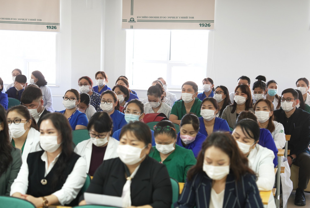 Эрүүл мэндийн салбарт хэрэгжүүлж буй бодлого чиглэл, аймаг орон нутагт чиглэсэн томоохон хөрөнгө оруулалт бүхий төслүүдийн талаар танилцуулж, эмч ажилтнуудын сонирхсон асуултад хариулт өглөө.