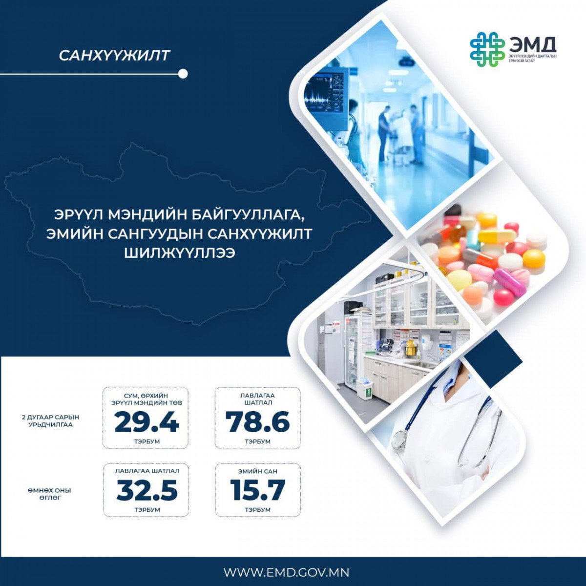 - Лавлагаа шатлалын эрүүл мэндийн байгууллагуудад хоёрдугаар сарын урьдчилгаа санхүүжилтээр 78,6 тэрбум төгрөг,