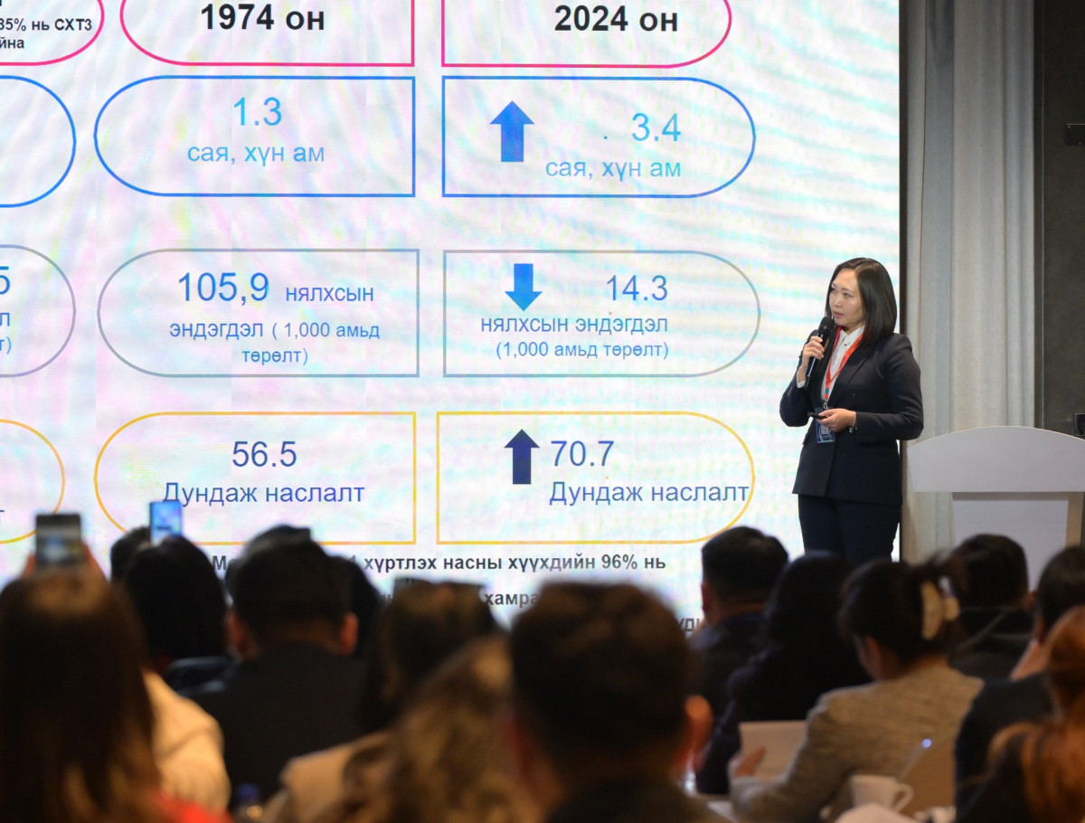 Сүүлийн 50 жилийн хугацаад Монгол Улсын хүн ам 1.3 саяас 3.5 сая, нялхсын эндэгдэл 1000 амьд төрөлтөд 105.9 байсан бол 14.3, дундаж наслалт 56.5 байснаас 70.7 болон нэмэгдээд байна. Энэ нь нийгмийн эрүүл мэндийн бодлогын бодит үр дүн" гэдгийг тодотгов.