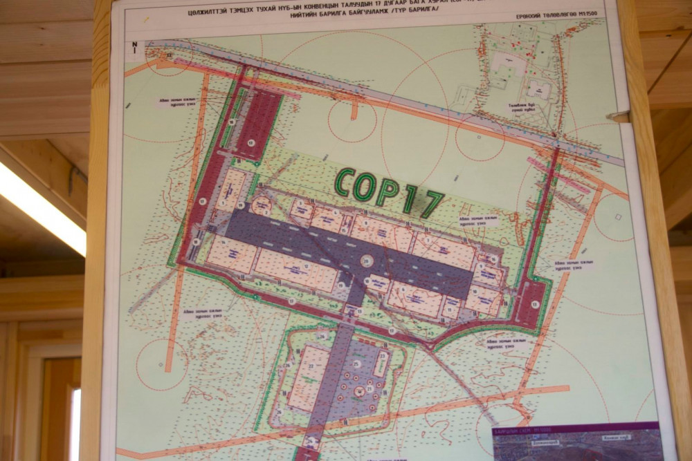 Үндэсний цэцэрлэгт хүрээлэнд 26,9 га талбайд СОР17 хурлын үндсэн арга хэмжээг зохион байгуулах бөгөөд үүнээс барилгажих талбай нь 44 мянган м.кв. Нийт 800 машины авто зогсоол, 20 түр байгууламж барина.