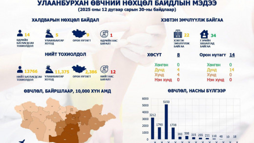 УЛААНБУРХАН ӨВЧНӨӨР 8 САРТАЙ ХҮҮХЭД НАС БАРЖ, 4 ХҮҮХЭД ХҮНД ОНОШТОЙ ЭМЧЛҮҮЛЖ БАЙНА