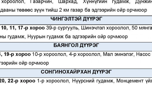 ЦАХИЛГААНЫ ХЯЗГААРЛАЛТ ХИЙХ БАЙРШЛУУДЫН ХУВААРЬ /2026.01.27/ 2026/01/27 2026 оны нэгдүгээр сарын 27-ны Мягмар гарагт цахилгаан эрчим хүчний “ХЯЗГААРЛАЛТ ХИЙХ” байршлуудын хуваарийг УБЦТС ТӨХК-аас мэдээллээ. Энэ удаад цахилгаан хязгаарлах хугацаа 2 цаг үргэлжлэх бөгөө…
